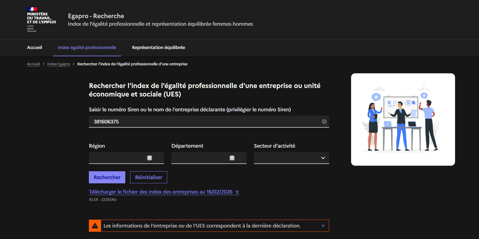 Chaque année, nous publions nos résultats conformément aux exigences légales. Vous pouvez consulter notre score et les indicateurs officiels directement sur le site du Ministère du Travail, en toute transparence :