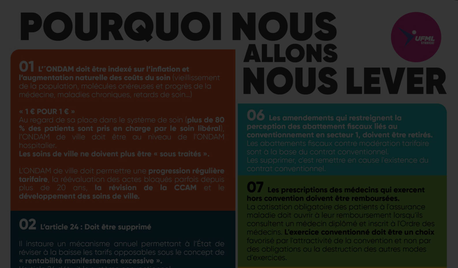 La cotisation obligatoire des patients à l’assurance maladie doit ouvrir à leur remboursement lorsqu’ils consultent un médecin diplômé et inscrit à l’Ordre des médecins. L’exercice conventionné doit être un choix favorisé par l’attractivité de la convention et non par des obligations ou la destruction des autres modes d’exercices.